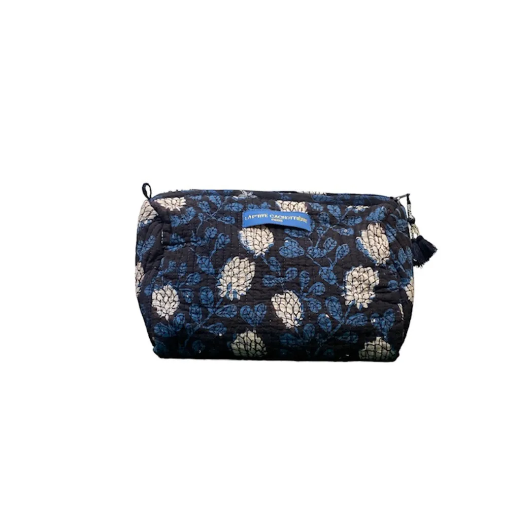 Trousse L Blockprint bleu/noir “La P’tite Cachottière”